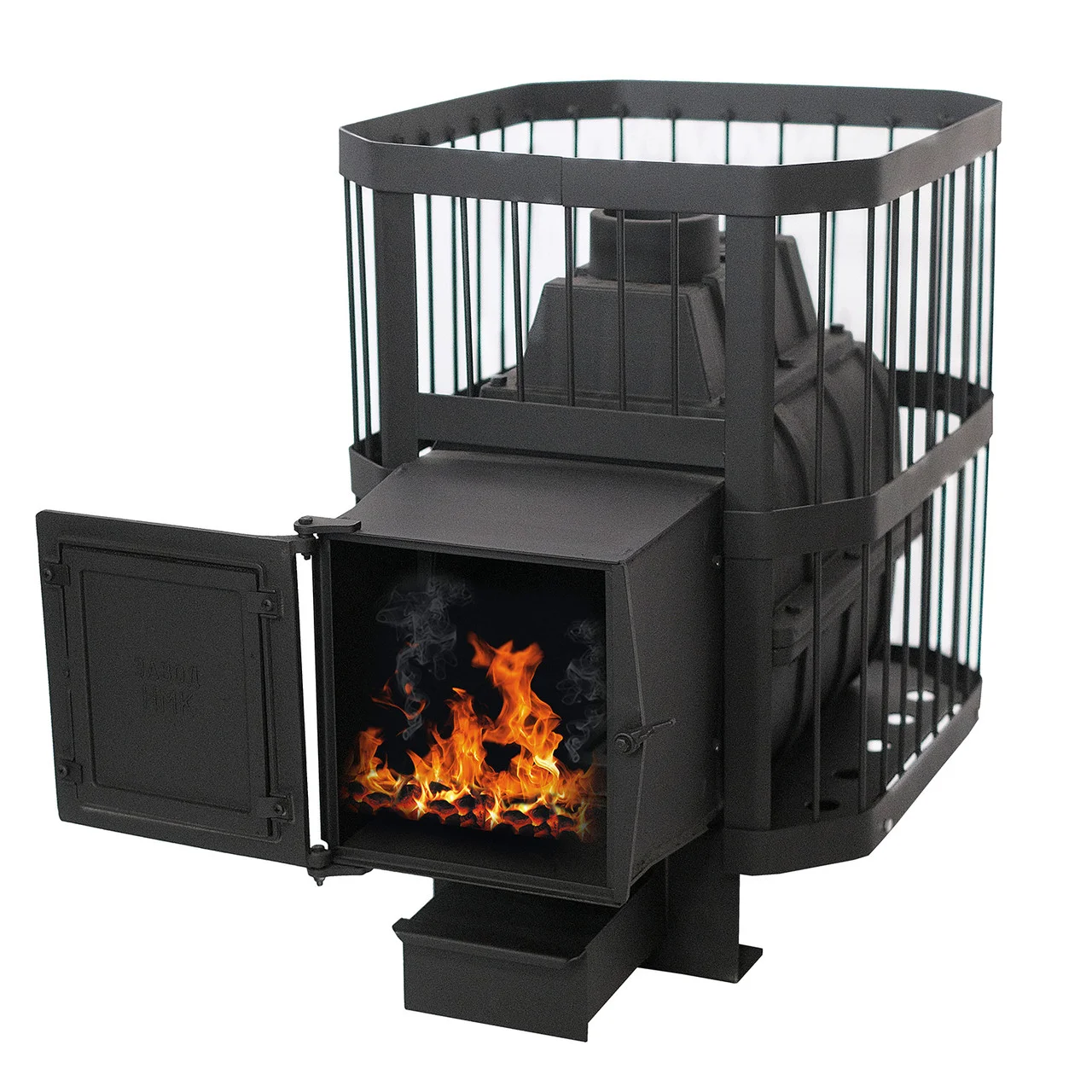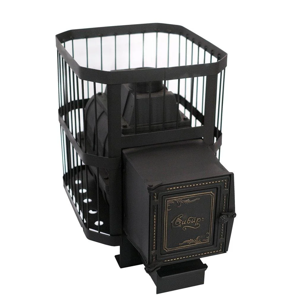 Печь банная чугунная "СИБИРЬ-24" с универсальной чугунной топочной дверкой (Сетка)