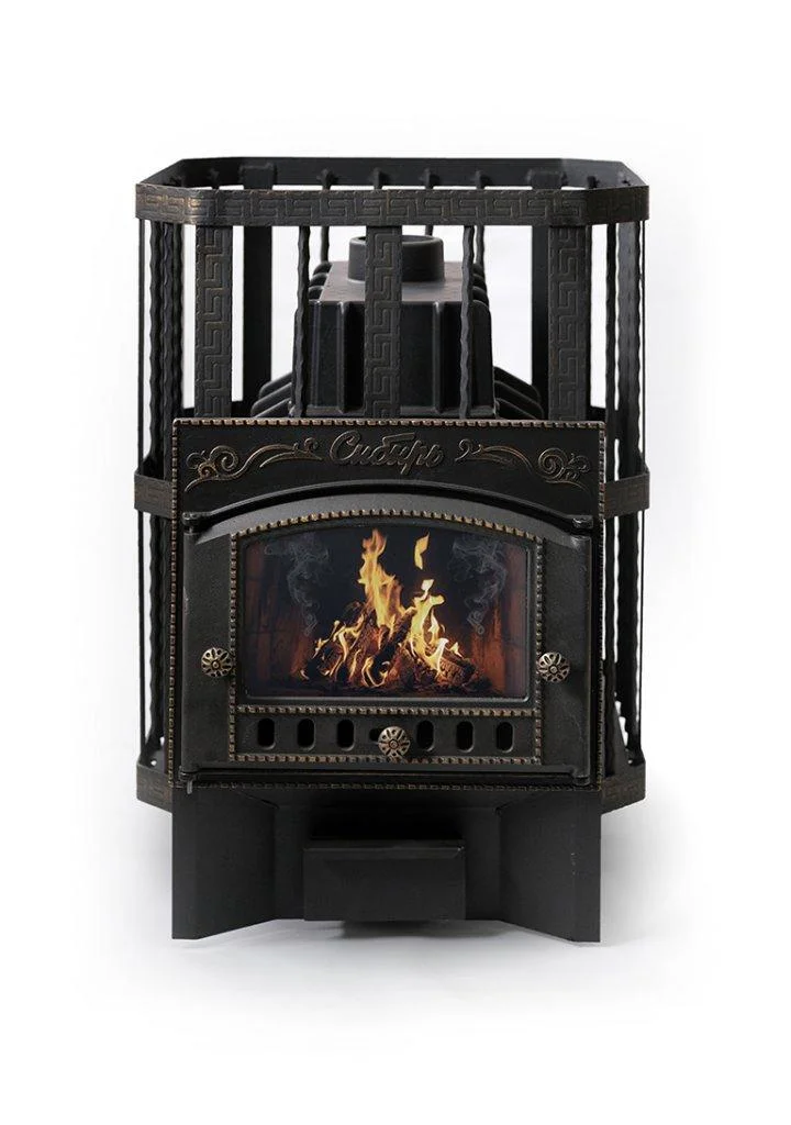 Печь банная чугунная "СИБИРЬ-32". Каминная дверка "Сибирь" (Кованная сетка)