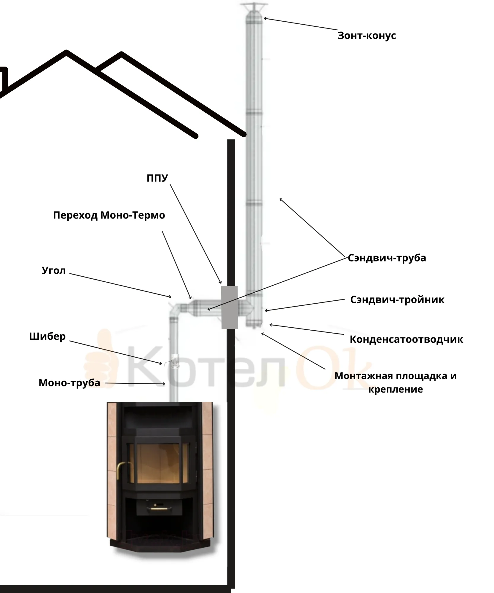 В сэндвич-трубе специализированный (жаростойкий) утеплитель