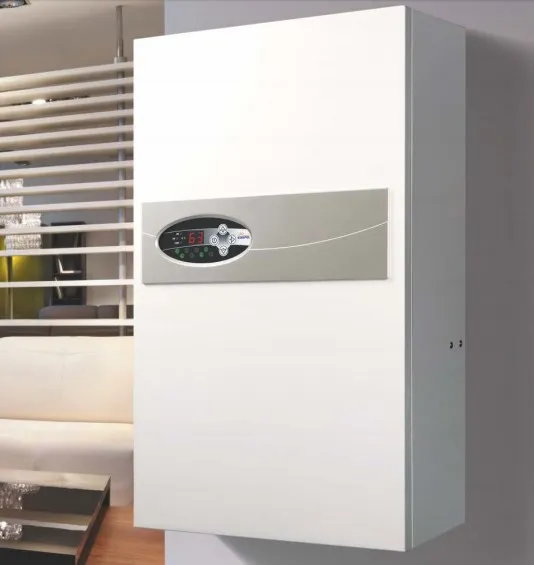 В стандартную комплектацию электрокотла входят система слежения за протоком теплоносителя, комнатный терморегулятор, клапан безопасности и термический выключатель.