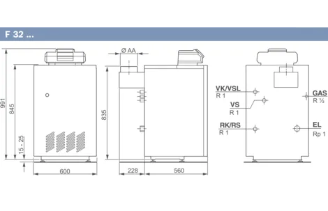 Заводская комплектация включает панель управления Excellence или Comfort. Модели мощностью 32, 44, 55 кВт оснащаются одноступенчатой газовой горелкой; модели 73, 94 кВт – двухступенчатой.