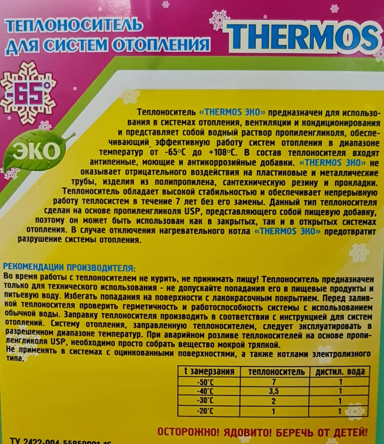| Температура начала кристализации | Теплоноситель | Вода |