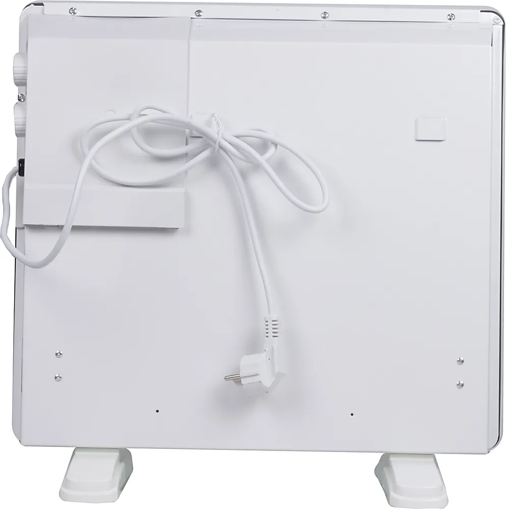 Электрический конвектор РЕСАНТА ОК-1000Е для обогрева помещений. Состоит из нагревательной части (ТЭН), заключенной в нижней части корпуса со щелеобразными отверстиями снизу и жалюзи в верхней части. Данная конструкция даёт возможность воздуху беспрепятственно проходить внутри конвектора, модели конвекторов Ресанта серии Е. Отличием данной серии конвекторов является наличие электронного управления, точного электронного термостата, а также LED дисплея с возможностью отображения текущей температуры окружающей среды. Благодаря встроенному датчику температуры реализована функция антизамерзания (конвектор автоматически включается, если окружающая температура опускается ниже установленного значения). Также есть таймер отключения по времени. Позволяет бесшумно, плавно и точно выставлять нужный Вам режим. В данной модели используется Х-образный нагревательный элемент. В комплекте идёт кронштейн для настенного крепления.